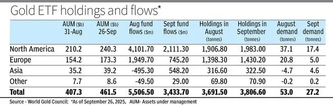 Increasing Indian investments in ETFs come at a time when gold is soaring to new highs on a daily basis over the last couple of weeks. On Tuesday, gold hit a new high of $3,871 an ounce before it pared its gains on profit-booking. At 1930 hours IST, it ruled at $3,824. Gold futures in the US were quoted at $3,854. In India, gold December futures on MCX were up at ₹1,16,377 per 10 gm. In Mumbai spot market, the benchmark, gold closed at ₹1,15,349.