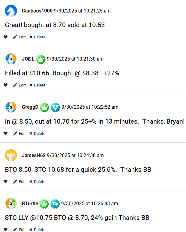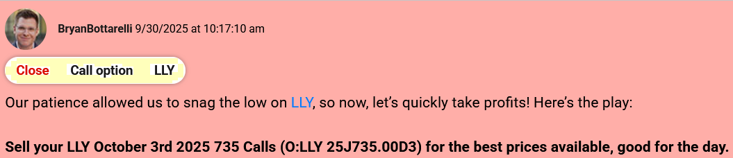 Yesterday, my colleague Bryan Bottarelli closed a 20% gain on pharma group Eli Lilly and Company (LLY) in less than 30 minutes.