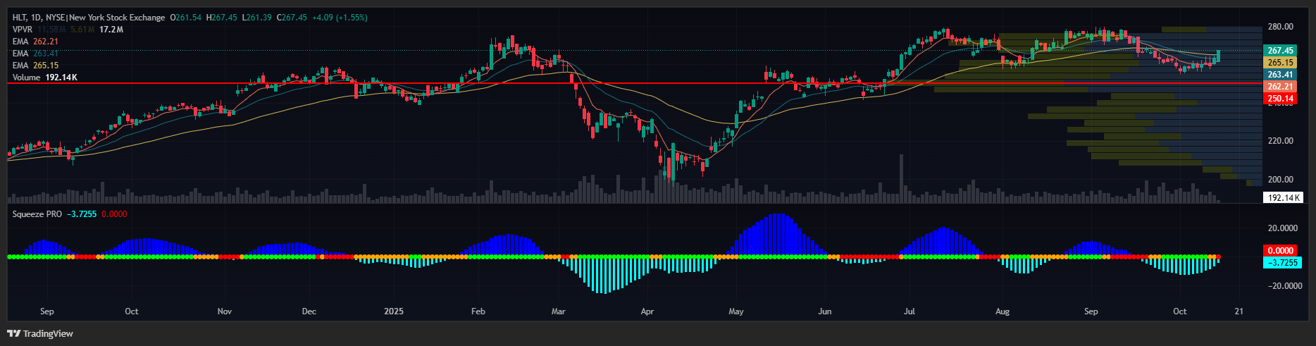 HLT has built a solid foundation of $255 over the past month. Multiple tests, multiple holds. When a stock finds its floor this convincingly, it’s telling you something about where smart money sees value.