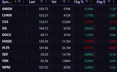 A few of them include Palantir (PLTR), Amgen (AMGN), Docusign (DOCU) and Dollar General (DG).