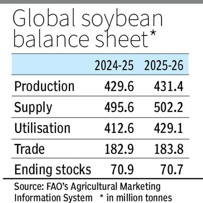 Meanwhile, the Food and Agriculture Organisation’s Agricultural Marketing Information System (AMIS) has raised soybean production estimates to 431.4 mt, up from 429.6 last season. It has pegged supplies 7 mt higher than last year at 502.2 mt, while projecting utilisation at 429.1 mt. Global trade will likely rise a tad to 183.8 mt (182.9 mt last season), but ending stocks will be marginally lower at 70.7 mt (70.9 mt).