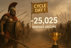 Transition into Cycle Day 1: The new cycle doesn’t tiptoe in — it detonates onto the field with the 25,025 average decline projection already flattened like fresh roadkill on a high-traffic Athenian highway.