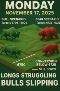 For greater detail of how this day unfolded, click on the Trading Room RECAP 11.17.25 link.