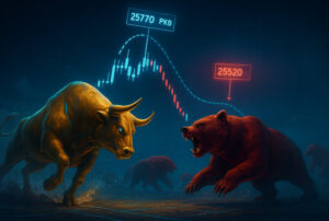 Bear Scenario: Price sustains an offer below 24900+-, initially targets 24760 – 24730 zone.