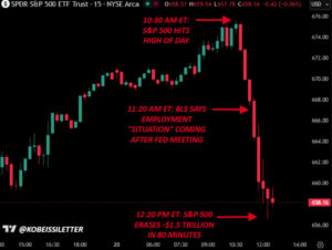 There is quite literally only ONE headline that can even be partially blamed for such a sudden market crash. At 11:20 AM ET, the US Labor Department said the November and October employment “situation” will be released on December 16th.